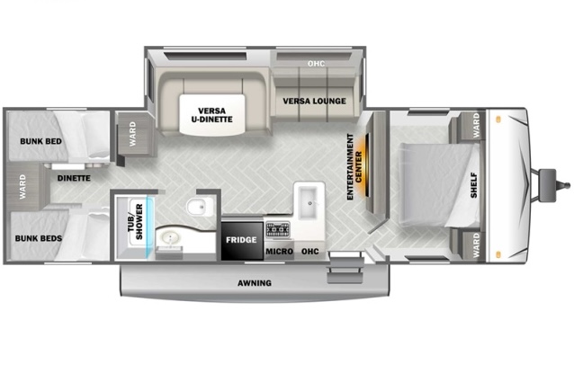 Stretch out and settle in with our Large 261BHWE — a spacious, family-friendly trailer with 26 feet of interior living space (and 31 feet total length). Thanks to the 12-foot slide-out, you’ll enjoy an open, roomy layout perfect for relaxing after a day outdoors.